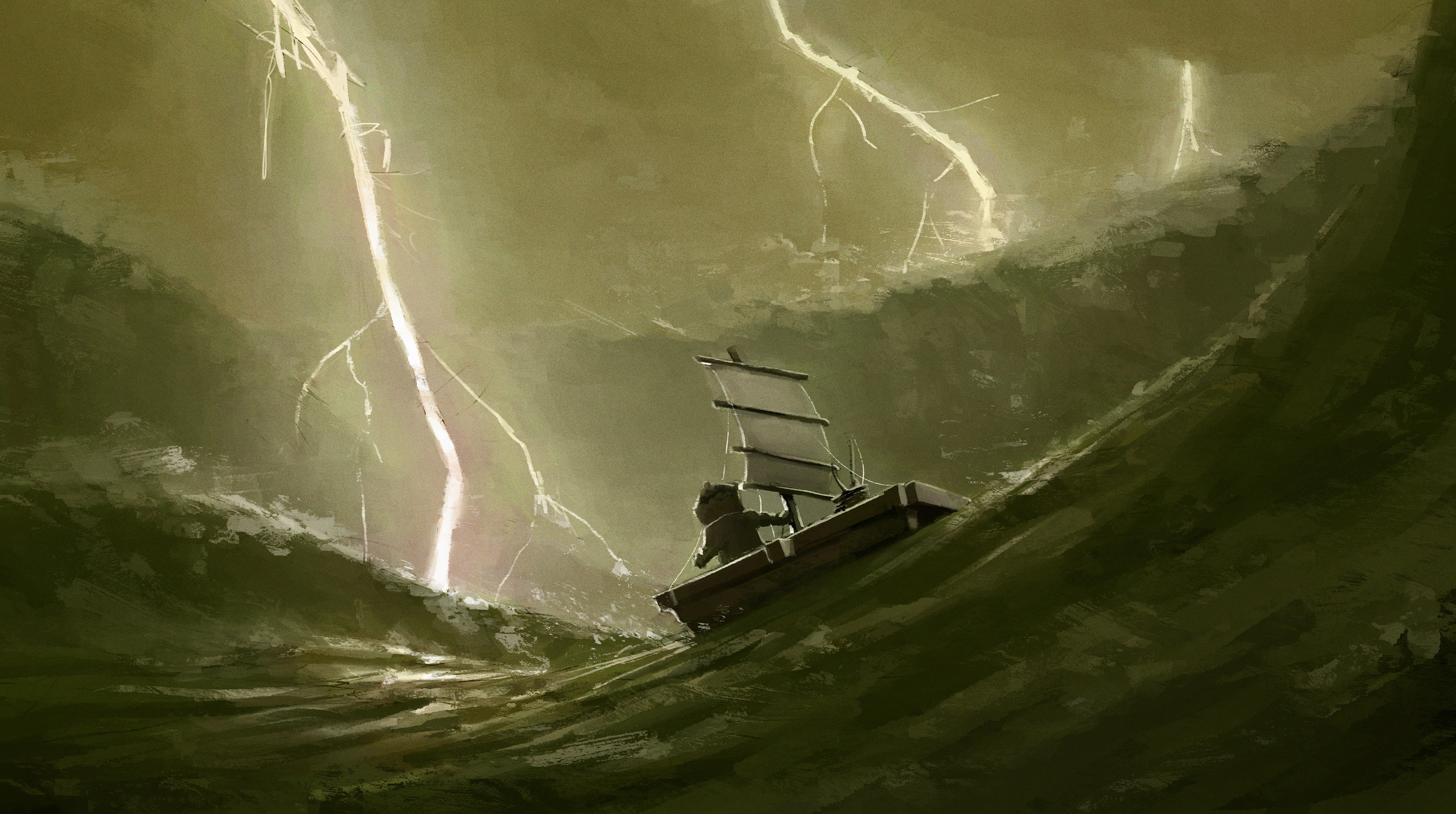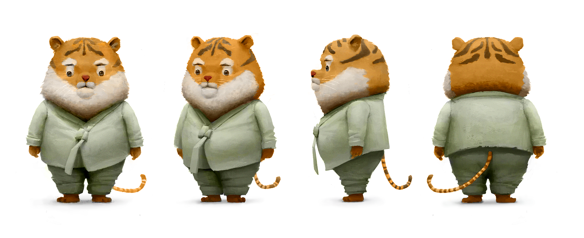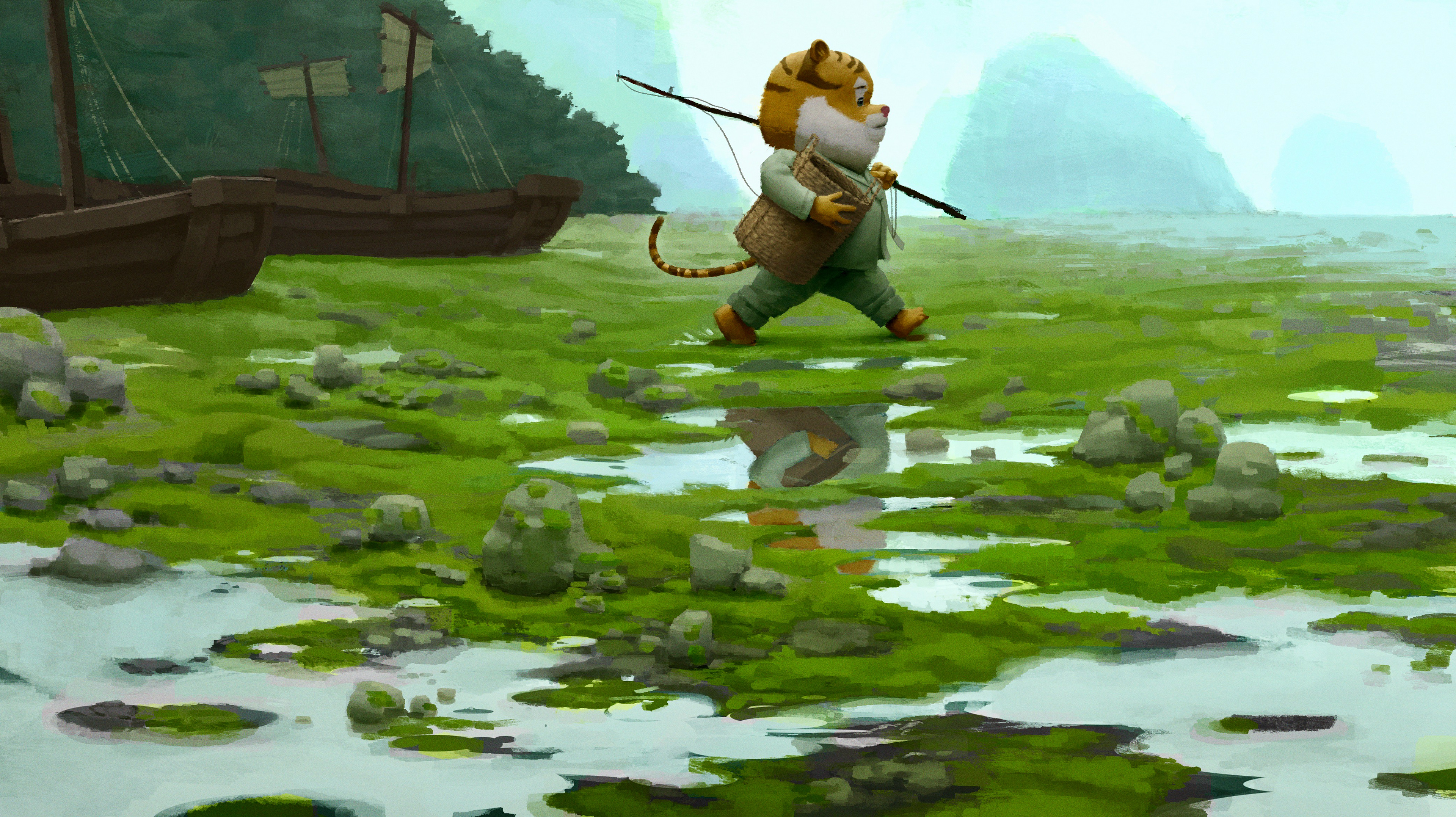 This personal project showcases character design and a series of keyframe paintings based on an original story. The narrative follows a tiger who sets out to fish but becomes lost in the boundless expanse of the ocean.